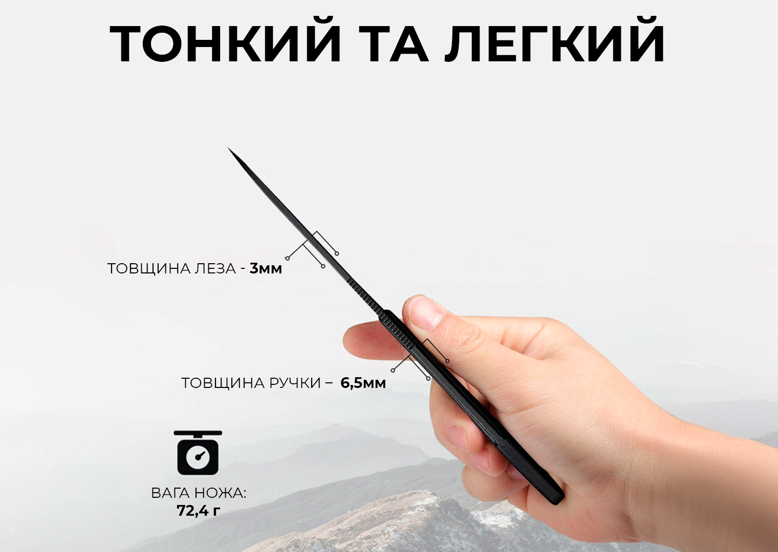 - товщина руківʼя – 6,5 мм;
