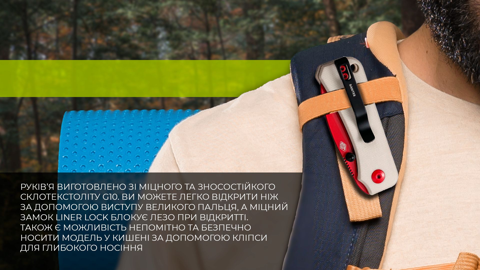 Ви можете легко відкрити ніж за допомогою виступу великого пальця, а міцний замок Liner Lock блокує лезо при відкритті. Також є можливість непомітно та безпечно носити модель у кишені за допомогою кліпси для глибокого носіння. Як випливає з назви, кишенькова кліпса для глибокого носіння утримує виріб глибоко в кишені, тому він менш помітний.