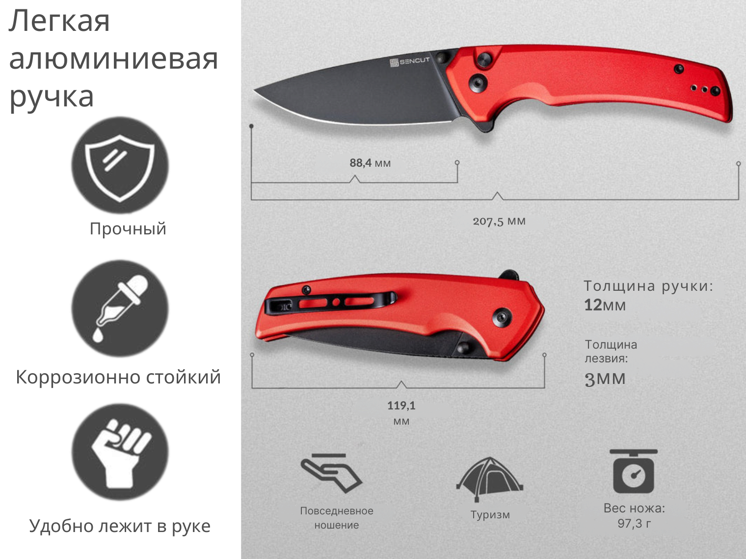 Нож складной туристический Sencut Serene, (8.8 см) D2 / Aluminum красный